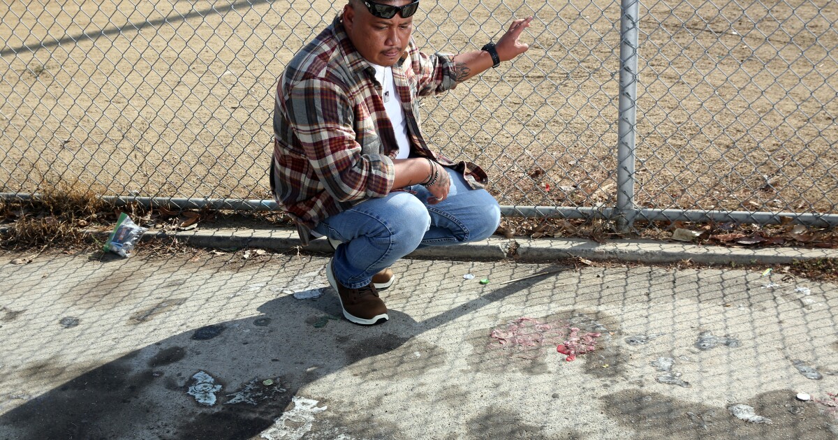 Beneath a highway overpass in South Los Angeles on Saturday night, a detective clicked his flashlight on and off as he carefully placed a yellow evidence marker in the middle of the street and then another closer to the curb, near the pooled blood of a 17-year-old boy.
